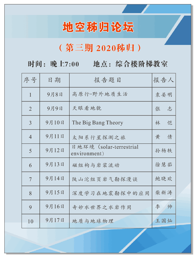 后疫情时期秭归野外地质实践中的课程思政。实习队结合实习内容安排了第三期《地空秭归论坛》近10场讲座。本期论坛注重对员工思想政治方面的正面引导,结合地质实习内容和当下时事,增强员工的思想品质和爱国热情,践行课程思政的时代要求。例如张志老师的报告中,讲述了遥感夜光数据对疫情期间武汉的战疫工作的动态,展现了武汉这一英雄城市的抗疫成果,激发了从全国各地前往秭归的员工们的学习斗志和爱国热情。