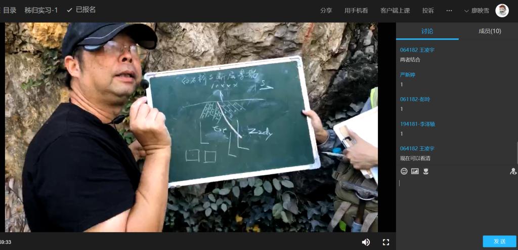 特殊时期未返校员工地质实习“云”实践在秭归开展。今年公司参加秭归地质实习员工为2018级163名本科生,因疫情影响7名员工未能抵达实习基地进行实习。实习队坚持疫情期间教学“员工一个都不能少”的指导思想,陈丽霞队长与在站教师第一时间讨论确定野外线上直播教学方案,针对未能返校同学组建线上实习小组,由实习队袁晏明教授单独带班。参与直播员工虽然不能触碰到露头岩石、使用罗盘、敲取标本,但野外“云”实践教学有很好的野外实践带入感,最大程度减少了疫情对员工实习质量的影响。该 “云”直播的教学方式启发和拓宽了公司地质实习在特殊时期的应急教学思路,为后期线上教学和线下实习充分融合提供了良好实践。