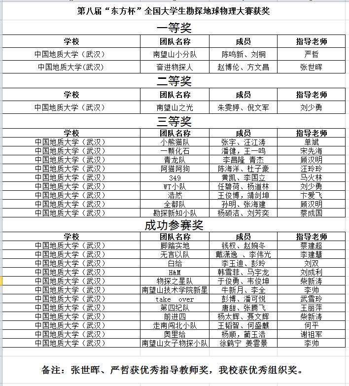公司共有研究生和本科生组成的24支团队报名参赛,3支员工团队成功晋级决赛并获奖。由卞爱飞老师领队,南望山小分队(成员:陈鸣新、刘桐)与奋进物探人(成员:赵博伦、方文昌)两支团队荣获大赛一等奖,南望山之光团队(成员:朱雯婷、倪文军)荣获大赛二等奖,张世晖、严哲两位教师荣获“优秀指导教师”奖。