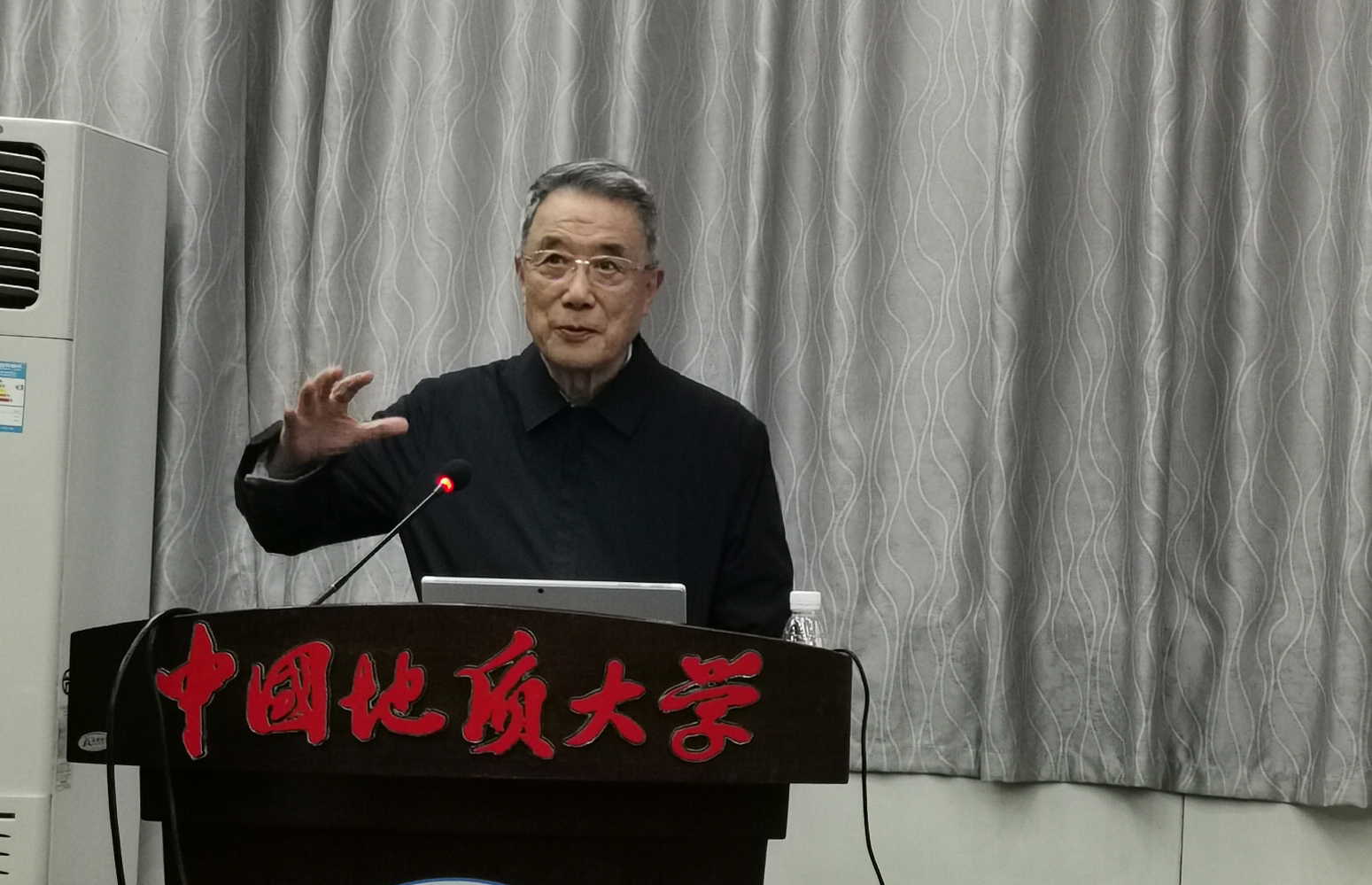 1223日下午,应​太阳集团tyc151cc胡祥云教授邀请,中国工程院院士、应用地球物理学家、工程管理学家、国家技术发明一等奖获得者何继善教授来校访问,并在八角楼学术报告厅做了“学习-实际-超越”的学术报告,全校100多位师生到场聆听讲座。