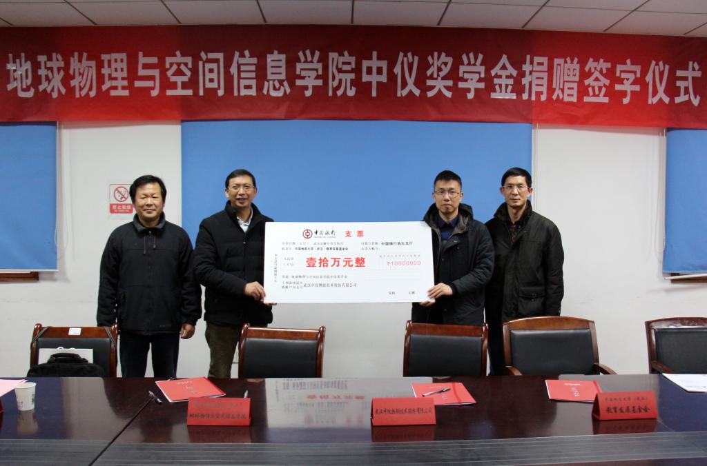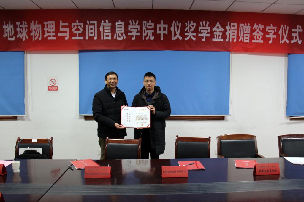 (通讯员 李周波 摄影 祁阳阳)2018年1月5日下午四点,​太阳集团tyc151cc“中仪奖学金”捐赠仪式在物探楼214会议室举行。武汉中仪物联技术股份有限公司董事长郑洪标,总经理助理张婉珈,公司党委副书记、纪委书记成金华,公司教育发展基金会副秘书长李门楼,公司党委书记刘子忠、副书记李周波、教师代表王毅教授、张学强副教授、张世晖副教授、辅导员祁阳阳、公司教育发展基金会工作人员等参加座谈会。会议由李周波主持。