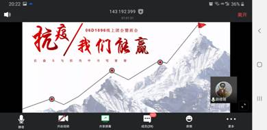 最后,全体成员齐唱团歌。刘子忠书记对同学们在疫情期间的居家学习生活提出了要求与建议,倡导同学们在上好网课的同时,把这次疫情作为学习的一个机会,培养自己的爱国意识、感恩意识、生命意识与规则意识,积极展现新时代青年良好的精神风貌。