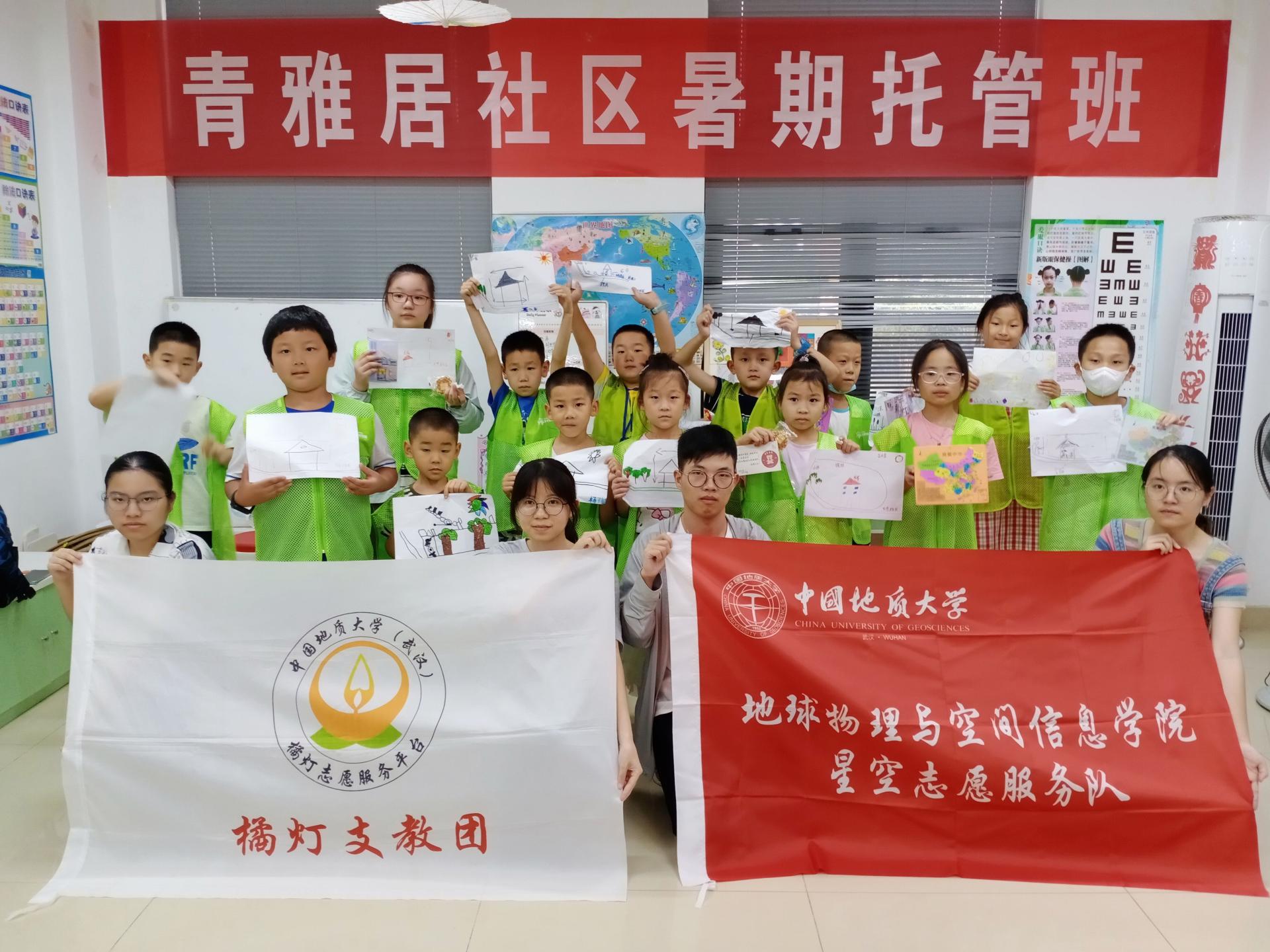 7月6日—7月31日,太阳集团tyc151cc“星空志愿服务队”(橘灯支教团实践团)开展2023年“老员工社区实践计划”之结对社区暑期托管志愿服务项目,通过社会实践活动,为武汉市青山区青雅居社区托管班进行通识类课程授课,共完成授课14课时,服务儿童260余人次。
