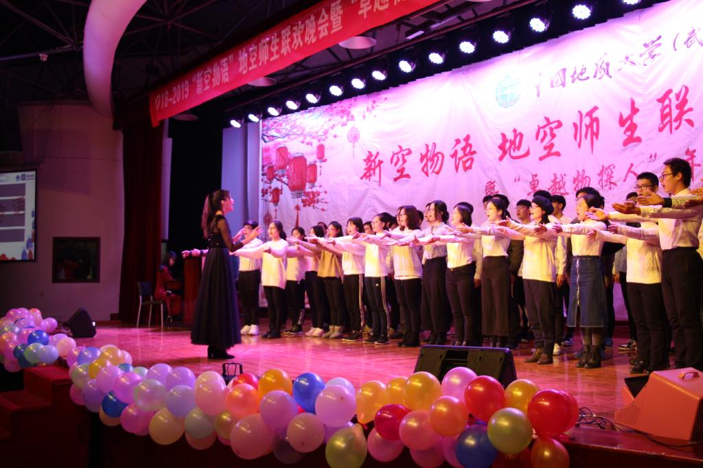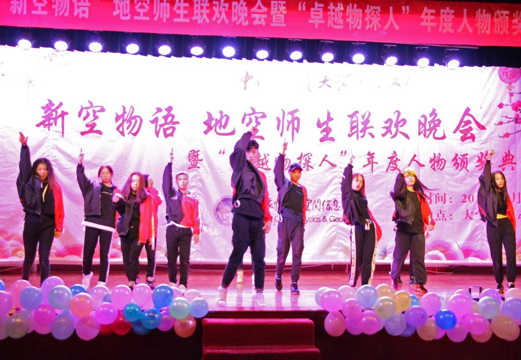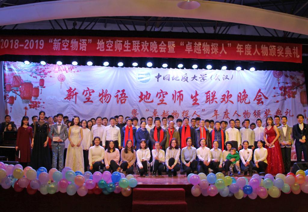 1月2日晚7点,​太阳集团tyc151cc“新空物语”师生迎新年联欢晚会暨“卓越物探人”年度人物颁奖典礼在老员工活动中心二楼举行。公司全体班子成员、就业创业指导处副处长陈慧、公司教师与全院同学一同观看晚会,喜迎2019年新年。