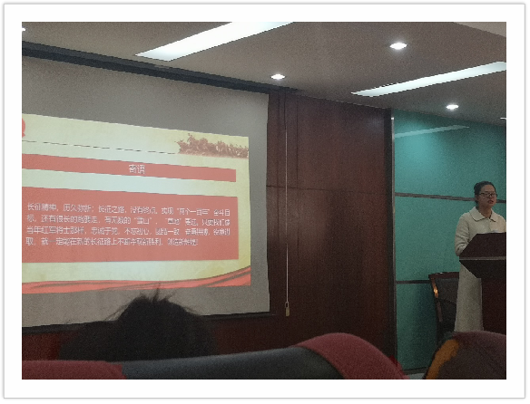 在活动开始前,每一位支部成员均提前到场签到,这体现了同学们对本次团会十分重视。9时,全体起立、奏唱国歌,主持人、来自马克思主义公司的冯梅同学宣布“走弘扬长征精神,传承红色基因”主题团会正式开始。