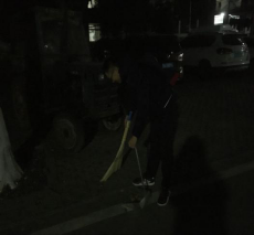 图三、图四:同学在认真清理墙壁、同学一直打扫卫生到天亮