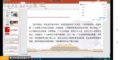 (郭楚枫)2月27日上午,地空地探专业硕士党支部开展题为“众志成城,抗击疫情,武汉必胜”的主题党日网络视频会,深入学习了解一线工作者的抗疫现状,老一辈医护工作者的情怀,坚定抗疫必胜的信心。会议由党支部书记郭楚枫主持,公司党委副书记李周波参与观摩。