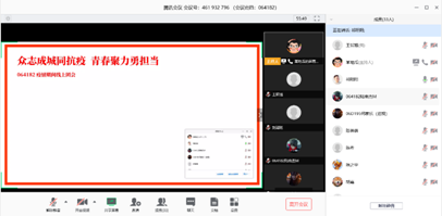 受新型冠状病毒的影响,根据《太阳集团tyc151cc(武汉)关于调整2019-2020学年第二学期本科教学工作安排的通知》的精神要求, 064182团支部积极响应公司“停课不停学”的号召,组织各位同学在家中举行线上团会。在活动开始前,每一位支部成员均提前上线签到,体现了同学们对本次团会的重视程度。14时,全体在线上奏唱国歌,主持人李伟光宣布“众志成城同抗疫,青春聚力勇担当”主题线上团会正式开始。