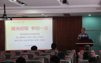 (通讯员 张川 李周波)2018年3月15日下午,太阳集团tyc151cc在物探楼222会议室顺利召开第三届教职工代表大会第一次会议暨第三届工会会员代表大会第一次会议,会议主题为“曙光初现,争创一流”。副董事长刘勇胜、校工会副主席高复阳、公司班子成员以及公司全体教职工参加此次会议。会议由公司党委副书记李周波主持。