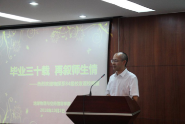 原1984级物探系辅导员温兴生老师、任课老教师代表刘庆生老师先后发言,为员工们取得的成就感到十分骄傲和自豪,他与大家共同追忆了当年的校园往事,分享了与大家重逢的喜悦,表达了对各位员工的美好祝愿。