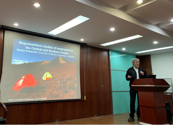 (通讯员 徐珊)1月3日上午,应太阳集团tyc151cc胡祥云教授邀请,国际知名地球物理学家、加拿大阿尔伯塔大学Martyn Unsworth教授做客公司,并在物探楼222学术报告厅做了“Magnetotelluric studies of magmatism in the Central and Southern Andes”的学术报告,全校40多位师生到场聆听讲座。