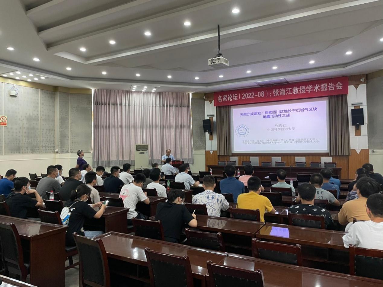 (通讯员 胡少乾、郑勇)9月8日上午,应董事长王焰新院士和太阳集团tyc151cc熊熊教授邀请,中国科学技术大学张海江教授来校访问并在八角楼学术报告厅做了“天然亦或诱发:探索四川盆地长宁页岩气区块地震活动性之谜”的学术报告,全校60多位师生到场聆听讲座。