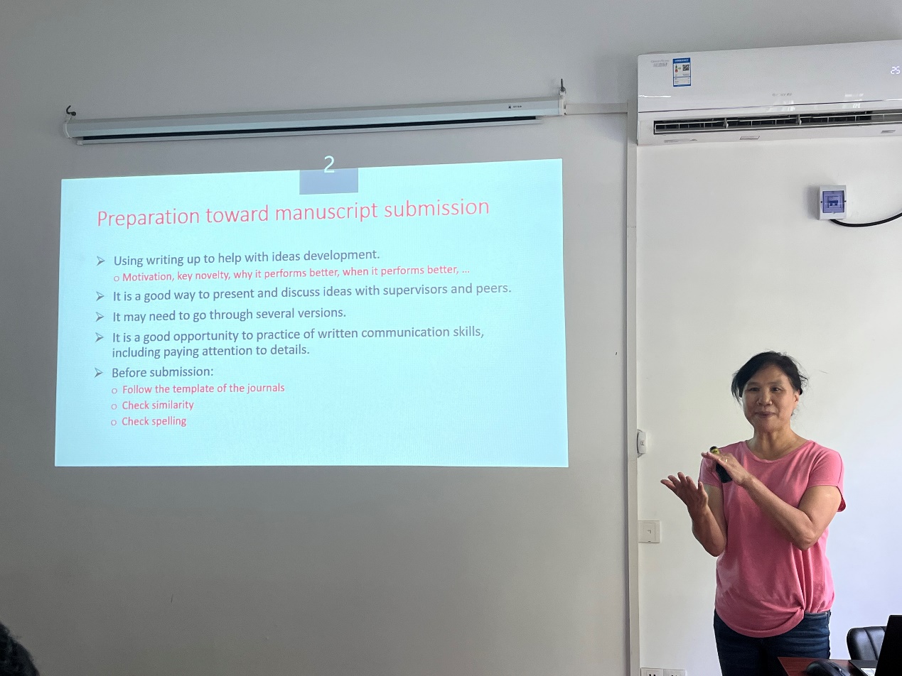 报告后的讨论环节,贾秀萍老师与在场的师生进行了热烈广泛的交流,并就写作时如何分配论文内容、怎样回复审稿意见等进行讨论并给出建议,现场氛围十分活跃。