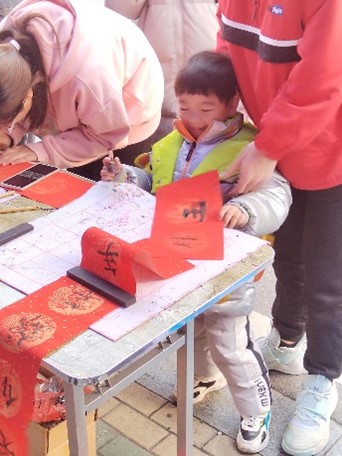 本次活动以传统小游戏和写春联抽奖活动为主体,吸引力一大批热爱传统文化,喜爱书法的人参加,无论是同学老师,还是老人小孩,大家的热情高涨,一批又一批的人来到到体育馆门前参加此次活动,大家脸上都洋溢着开心的笑容。