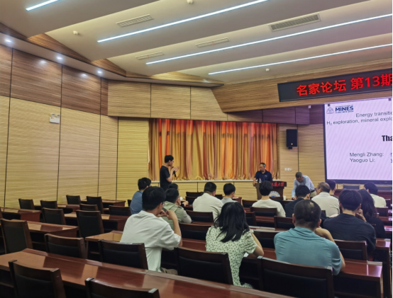 交流环节,李耀国教授就遍历采样技术的原理应用、未来发展以及如何寻找科学问题、如何把握科学前沿、地质氢勘探前景等内容和与会师生进行了亲切的交流讨论。李耀国教授鼓励青年教师和员工勇于跳出固有思维模式、开创新的研究领域,立足于勘探地球物理,为实现能源转型及碳中和目标做出更大贡献,现场反响热烈。