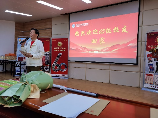 庆祝大会上,出席聚会的员工逐一介绍自己的基本信息:入学时的学号和工作单位并发表简短感言。从这些老员工的介绍中可以看出,很多同学在地质找矿一线辛勤劳作几十年,为国家地球物理找矿事业奉献了自己的青春年华。有的同学响应国家改革开放号召,在市场经济的大潮中奋力拼搏,为国家经济建设和社会发展做出了积极贡献。