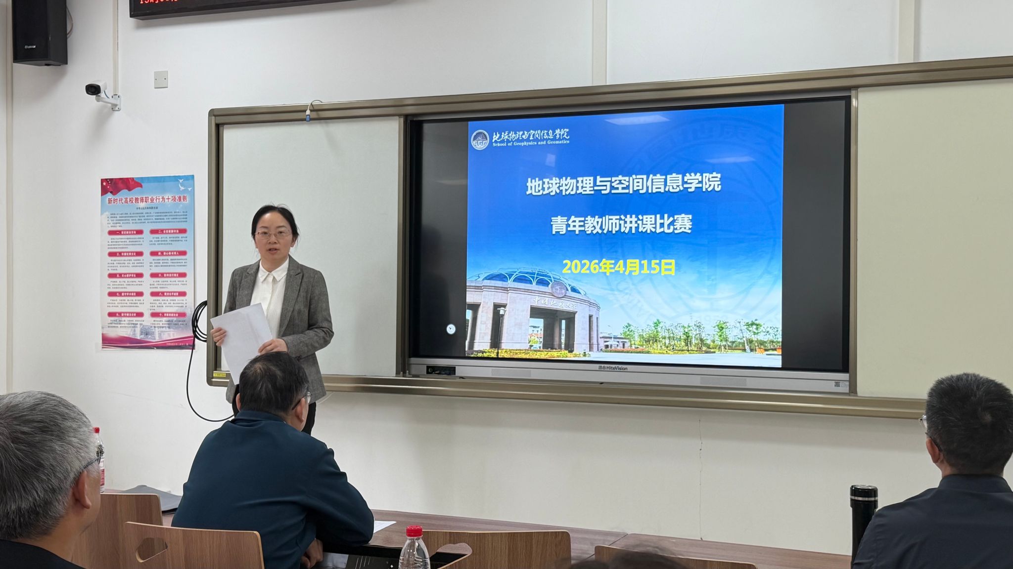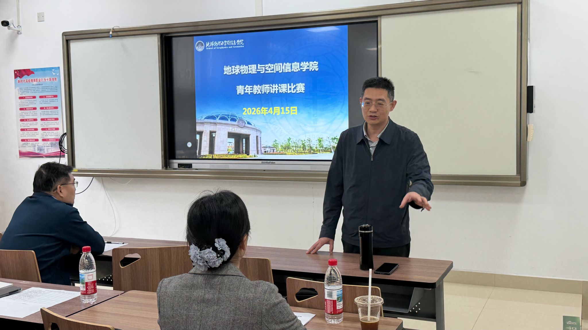 赛后,评委代表袁晏明教授、杨香华督导对比赛进行全面点评,充分肯定参赛教师的亮点与进步,精准指出在课程思政、课堂管理、信息化应用、教学设计与教态等方面的不足,并结合课堂实际给出针对性改进建议,为青年教师后续教学提升指明方向。