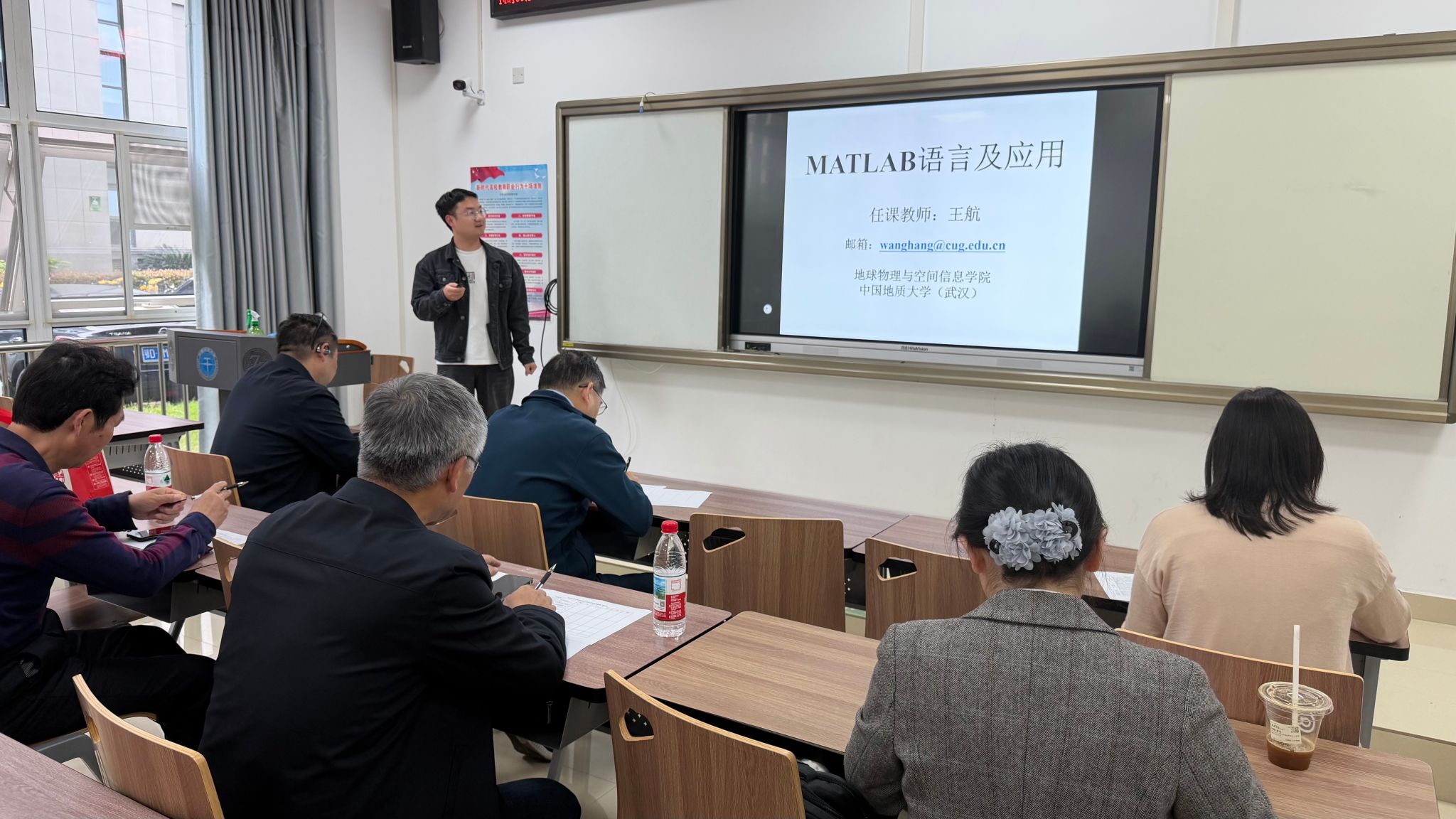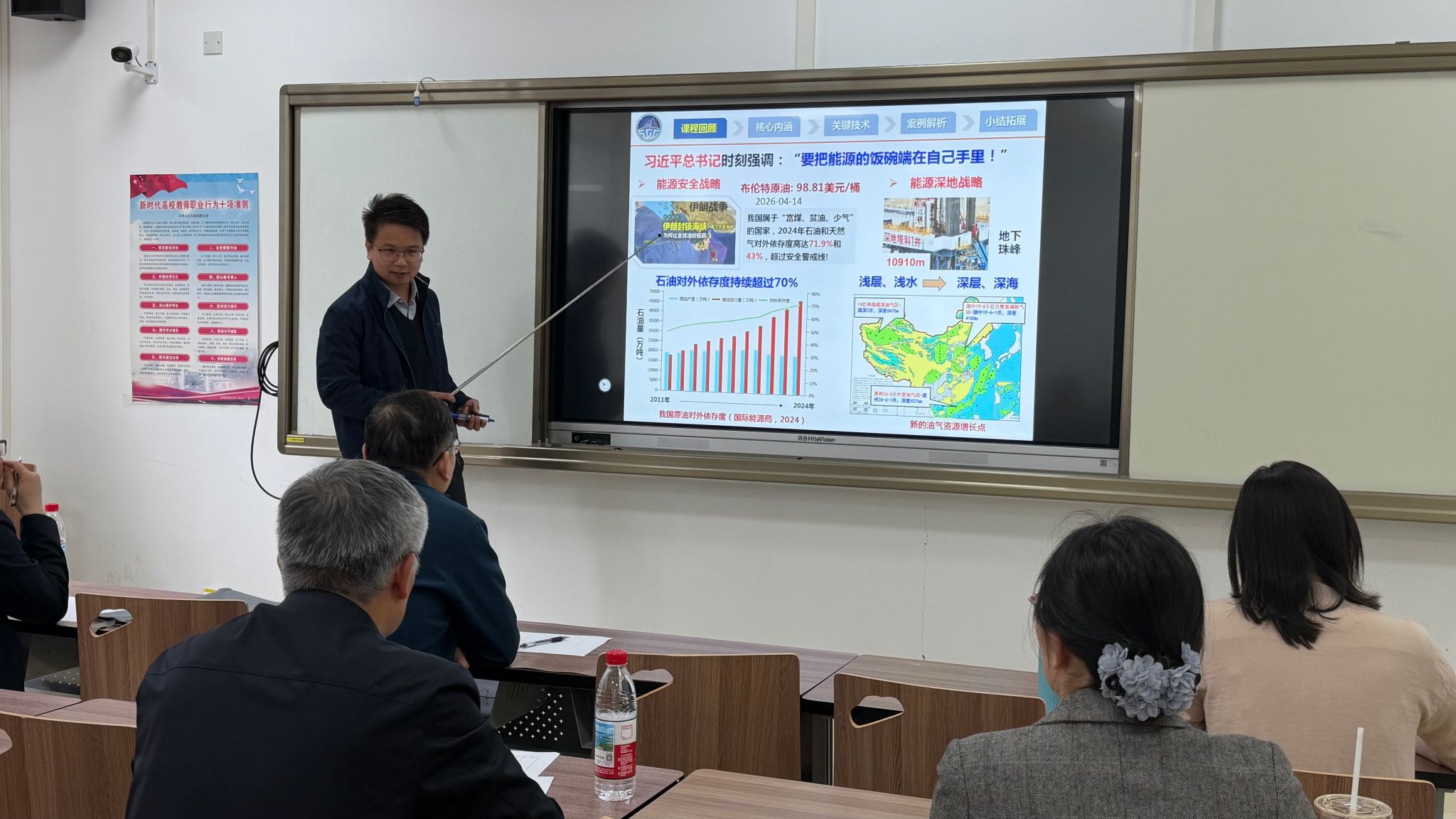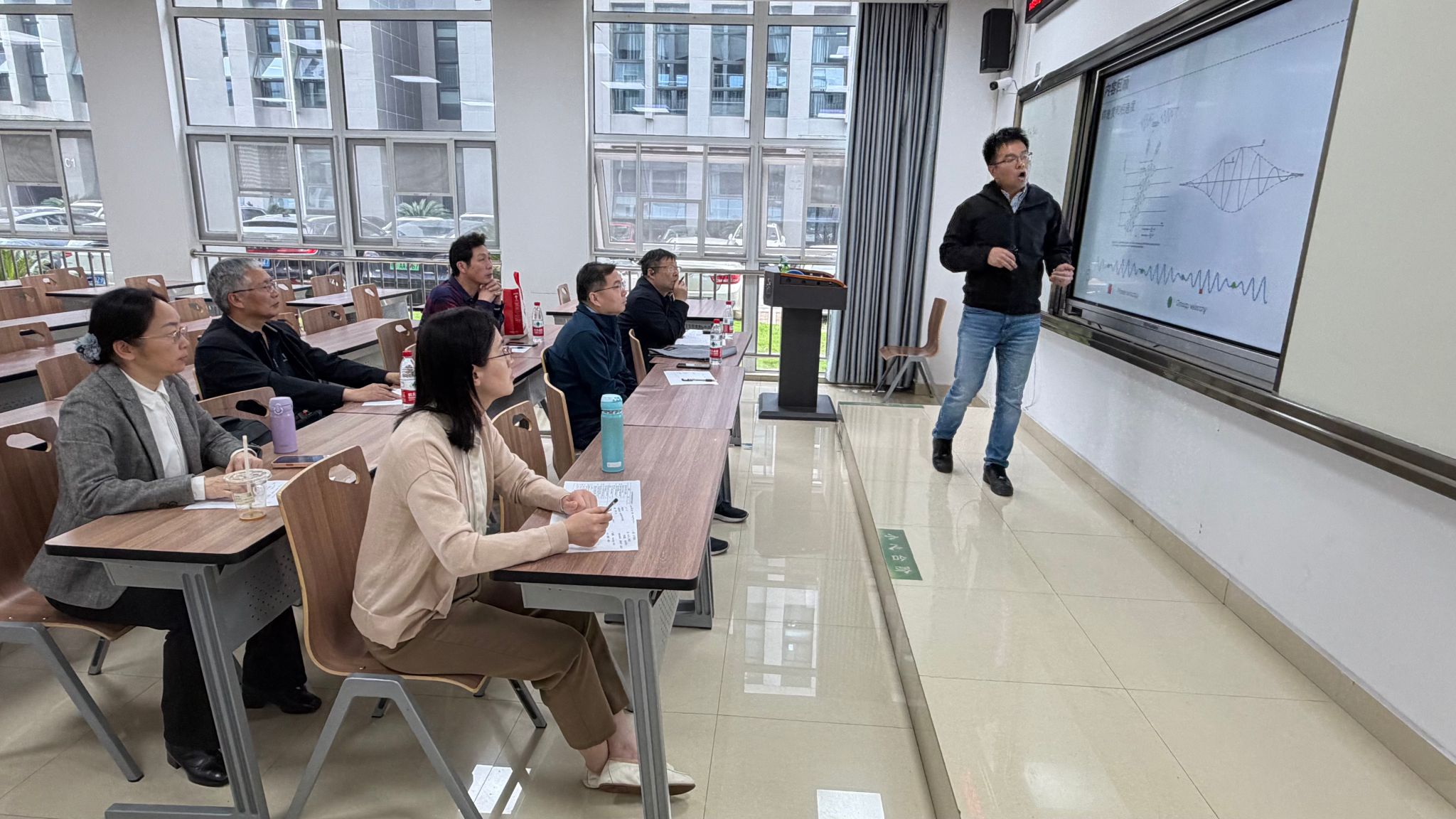 比赛开始,参赛青年教师(王航、曾智伟、刘书豪、赵凯锋、靳松)按照抽签顺序依次登台,围绕课程重难点展开15分钟规范授课,教学设计严谨、课堂互动生动、语言表达流畅,充分展现出扎实的教学功底与积极向上的精神风貌。评委团依据评分标准公平公正现场打分,工作人员实时统计核算,确保成绩准确透明。